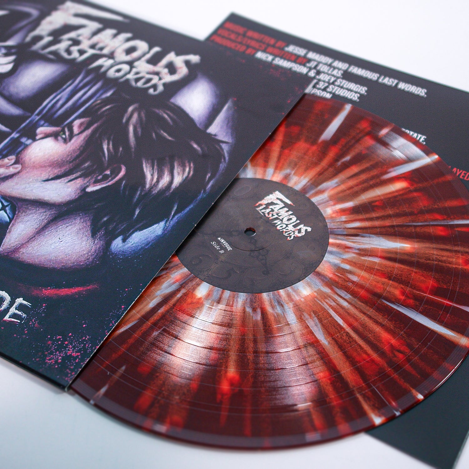 Famous Last Words 'Two-Faced Charade' Tri Color (Red, Black & White) Marble With White Splatter Vinyl